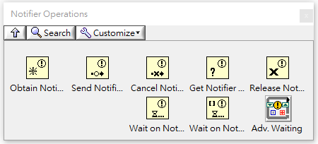 LabVIEW_Notifier傳遞資料、程序管控教學範例),這篇介紹另外一個簡易型的Synchornization家族成員-Occurrence。從Occurrences的元件總共3個就能知道其功能並不多,多用在簡易的程序順序上。如果想了解較高級的Queue應用也可以參考Queue的教學: